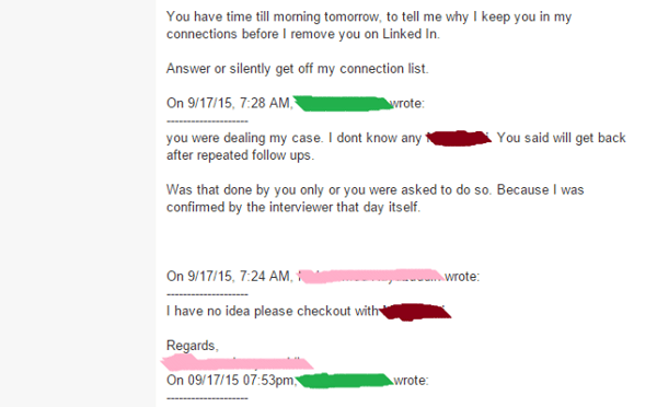 This time it was the turn of the Job seeker to return the favor; and he returned it in a profoundly colorful language, visible to everyone on HR’s page. He even reported this unprofessional behavior of HR to his current employer, and also to every possible contact he can get a hold of.