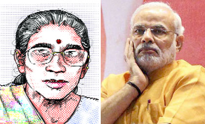Narendra Modi arrived late, accompanying L. K. Advani by his side. While Modi was seen doing a shastaang pranam to Mata Durga (Sonia Gandhi dressed as Durga) and later giving a two-minute speech on acche din; Advani took mic in his hand and sang full song ‘Mata Sherawali bharde jholi khali’.